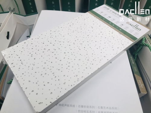 達(dá)辰礦棉吸聲板以礦物纖維棉為原料制成,具有很好的吸聲、隔熱效果。其表面可以作出滾花、浮雕、噴砂等效果,圖案有滿(mǎn)天星、毛毛蟲(chóng)、十字花、中心花、核桃紋、條狀紋等,圖案豐富,更好地滿(mǎn)足消費(fèi)者的需求。礦棉板能隔音、隔熱、防火,任何制品都不含石棉,對(duì)人體無(wú)害,并有抗下陷功能。
